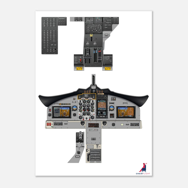 This poster was developed by a professional pilot and a graphic designer working together to ensure both aesthetic appeal and technical accuracy. Every instrument, switch, and gauge was carefully redrawn from reference photos, maintenance manuals, and the aircraft’s official documentation to create a faithful representation of the real cockpit.